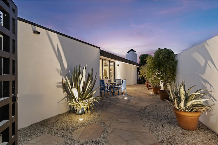 Courtyard features: Includes outdoor furniture, umbrella and outdoor TV. Courtyard off of primary bedroom will be entirely private; other occupant might pass through outdoor areas while accessing the street.