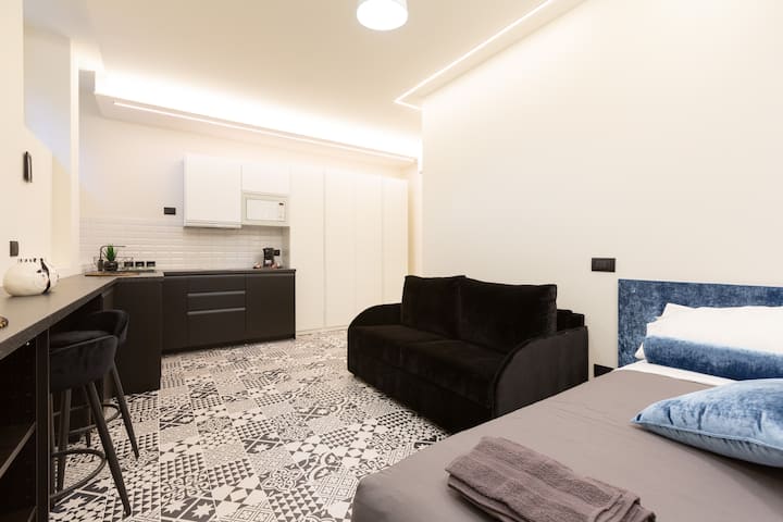 -The Living Room area is composed of: a double bed, a sofa that can be transformed into a sofa bed and a TV that you can easily use.