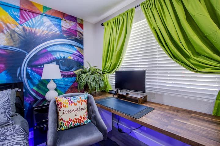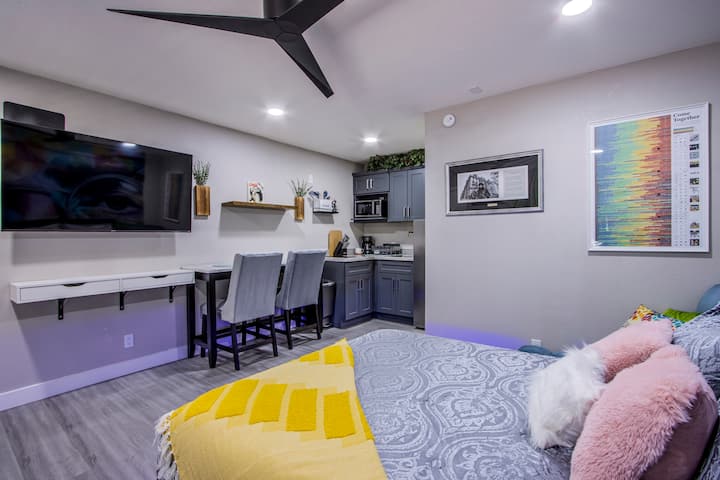 This downtown studio rental is designed to offer the perfect blend of comfort, convenience, and inspiration with fast Wi-Fi, comfortable bed, and a workspace desk equipped display monitor.