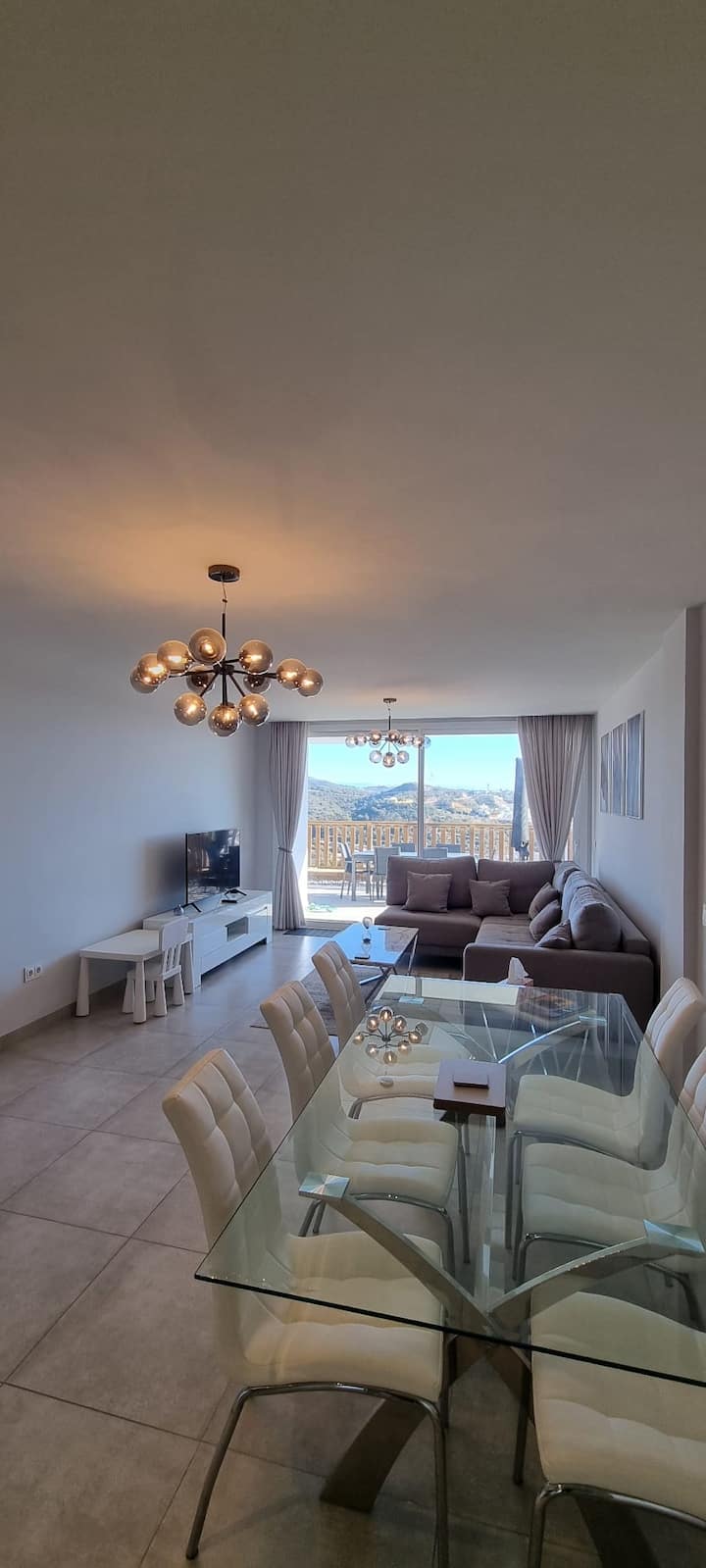 Brand new apartment on the ground floor in a central location . 15 min walk to the charming La Cala de Mijas and 600 meters to the nearest shop and 900 meters to the beach where you will find one of the finest white beaches on the Golden Mile. In the area there are beautiful sun areas by the swimming pool with spa and fitness facilities. Fiber network, wireless / Smart TV. Private parking right near the apartment. View over the Mediterranean Sea and the mountains towards the Sierra Nevada.