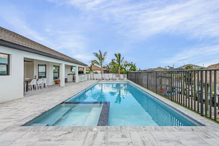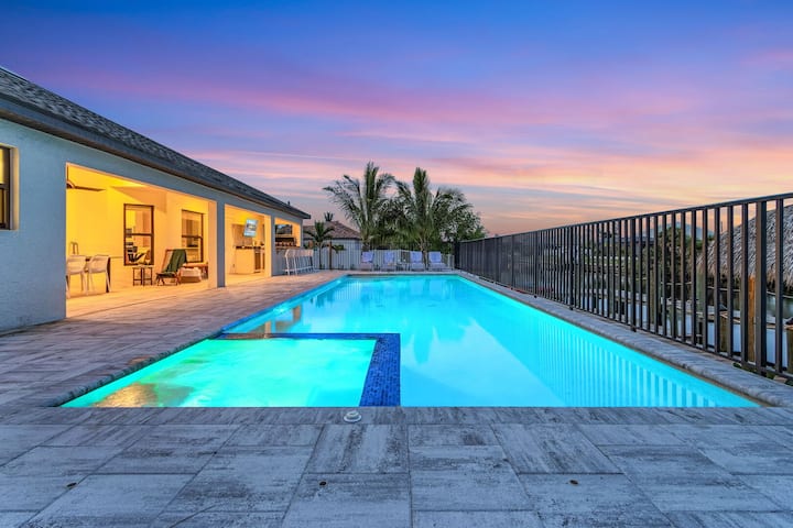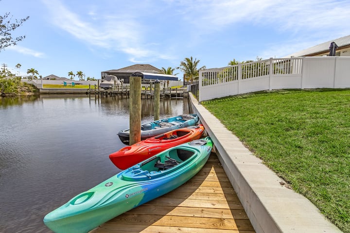 Set sail for the ultimate getaway at Villa Nautical Paradise--a luxurious waterfront escape designed for relaxation, adventure, and endless fun. Nestled along Cape Coral’s pristine Gulf-access canals, this stunning retreat offers an unparalleled blend of serenity and entertainment. Whether you're lounging by the heated pool, sipping cocktails at the private Tiki bar, or exploring the waterways by kayak, every moment here is an experience to cherish. Here’s what makes this home so special: