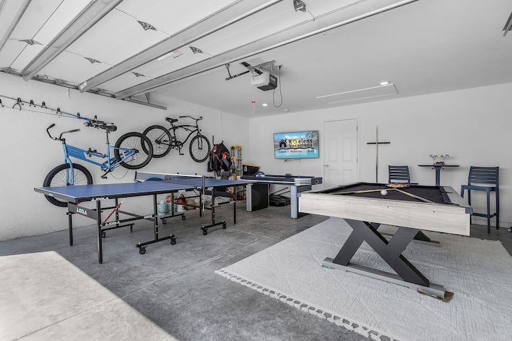 Game Room & Half Basketball Court: Non-Stop Entertainment - Challenge your crew to a game of pool, ping pong, or air hockey in the dedicated game room. Feeling competitive?! Take it outside to the half basketball court for some friendly competition!