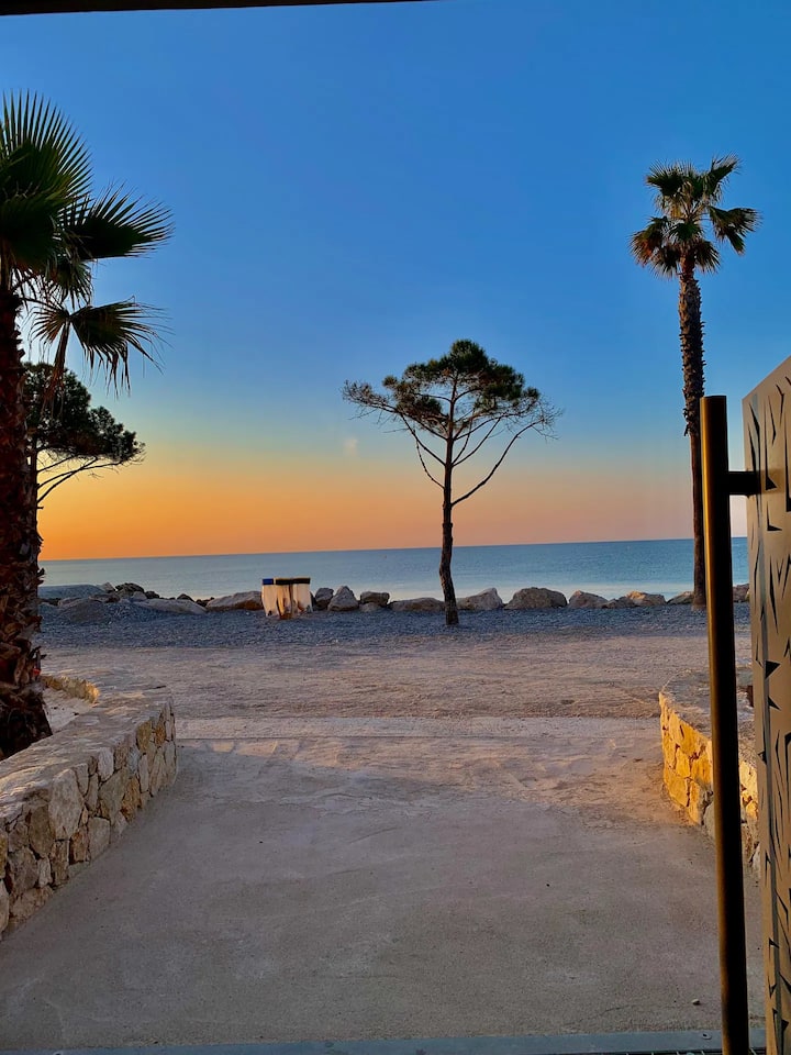 This home is right on Villeneuve-Loubet Plage Beach.