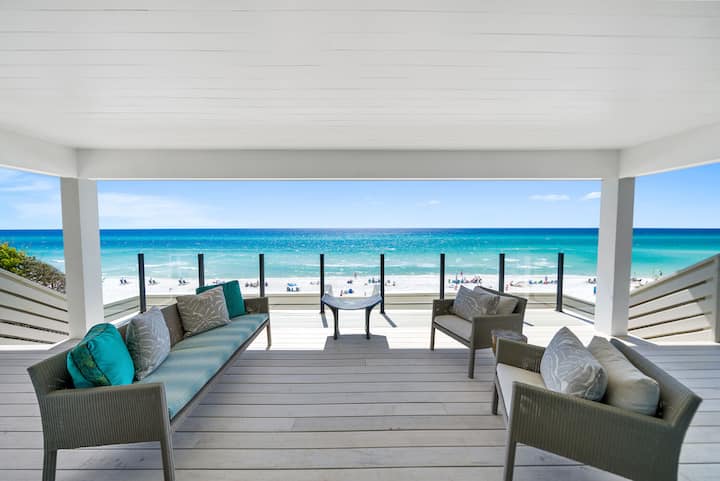 “Dream On” is a private, state-of-the-art luxury beachfront vacation rental located in the heart of Seacrest Beach, Florida. Dazzling emerald-green waves and white-sugar sand greet your view from every angle of this vacation rental on 30A, both inside and out. Over 2,500 square feet of beachside ambiance has been strategically constructed over the last 2 years with the primary intention to exceed a 5-star experience. Brand-new unique furnishings and décor from ceiling to floor, beachfront master suites, a private beach boardwalk, and a private pool are just a few of the amenities that await those who seek out new vacation memories to last a lifetime!