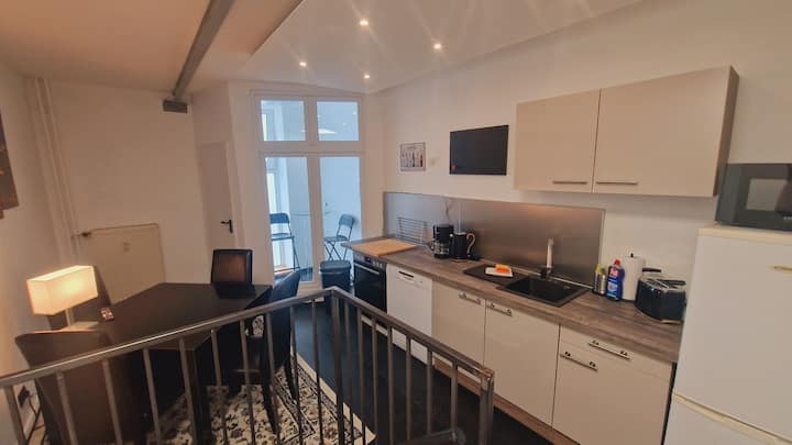 Centrally located near 2 subway stations, large new modern bathroom with walk-in shower, washer /dryer, large Kitchen + dining table + dishwasher, ceramic hob, oven, microwave, smoking room.