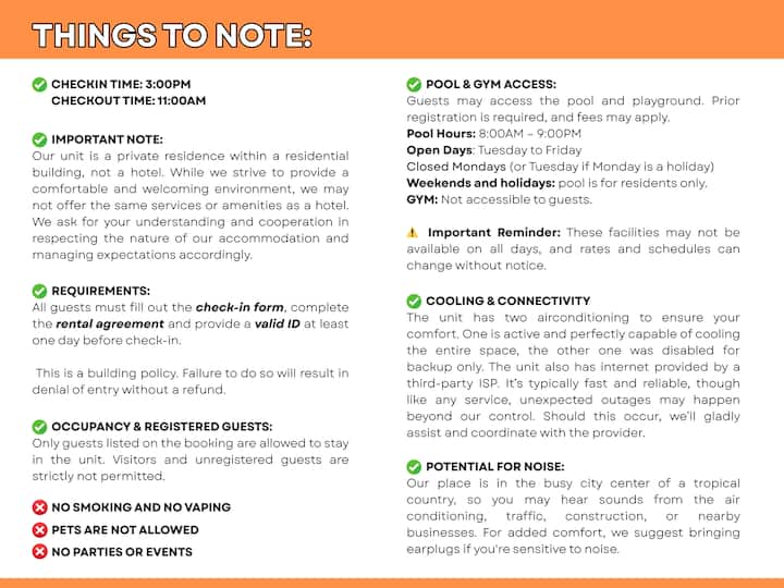 ✖️ Gym: Not accessible to guests. It is strictly for residents only.