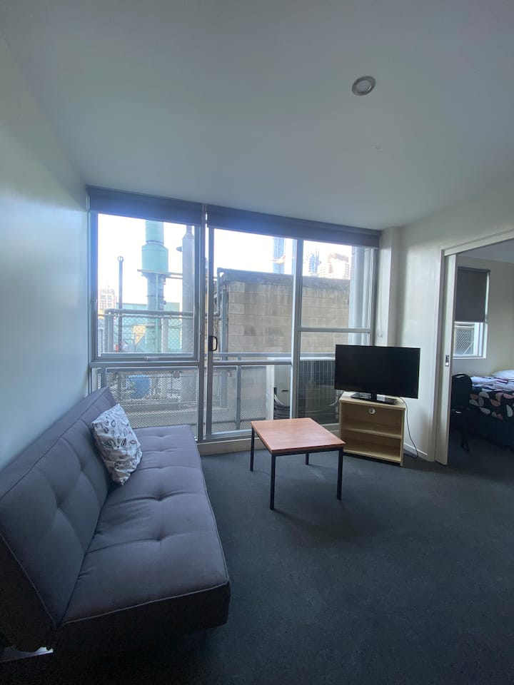 Roomy CBD apartment for 5 with queen bed, double bed and sofa bed. Includes kitchen, private bathroom, free Wi-Fi, smart TV and air con. Walk to Queen Vic Market, Lygon Street, Melbourne Central and universities. Tram at doorstep with quick access to arts precinct, stadiums and shopping. Secure building with pool, gym, café and parking. Perfect for families or friends exploring Melbourne together.