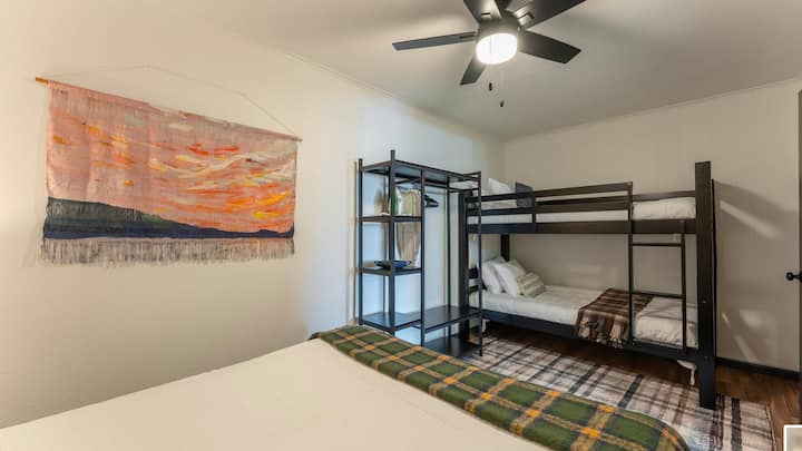 • 1 bedroom unit featuring one queen-size bed, alongside another bedroom equipped with two twin-over-twin size beds.