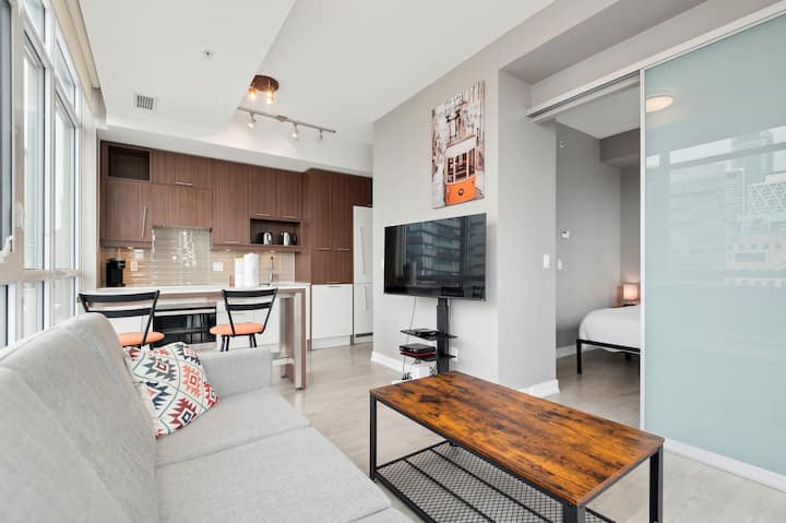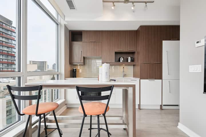 Located just steps from both St. Andrew and Osgoode subway stations, any part of downtown Toronto is accessible in minutes. For the colder months, a PATH entrance is a mere 2-minute walk away. At this property, we offer various spaces, each meticulously crafted to provide you with a stunning accommodation experience. Although our style remains uniform throughout, the scenery, arrangement, and design of each space may differ.