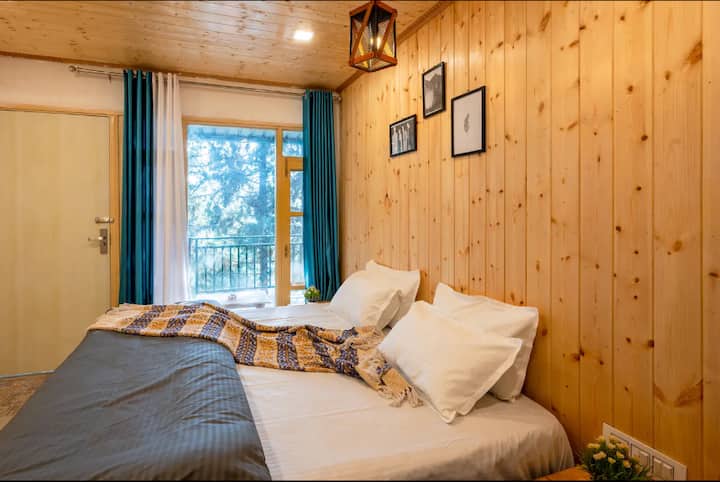 Shared balcony in front of the room offers scenic views of the dense pine forest which is breathtaking, providing a perfect backdrop for a relaxing getaway.