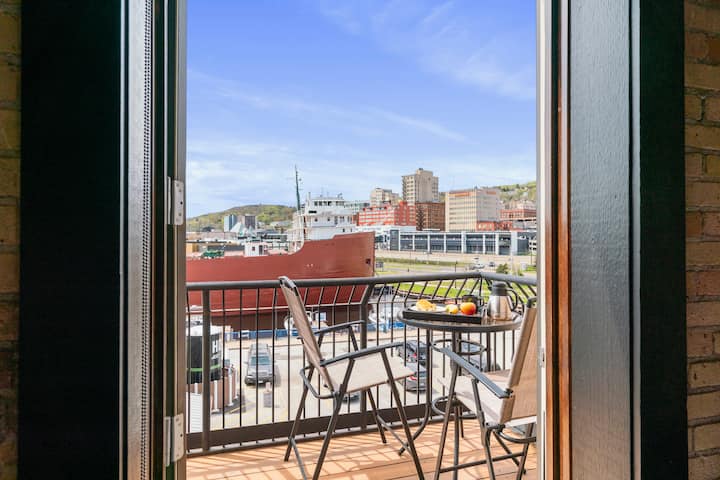 Gather your family or friends in the heart of Canal Park! Enjoy stunning views of the city and your morning coffee from your private balcony!
