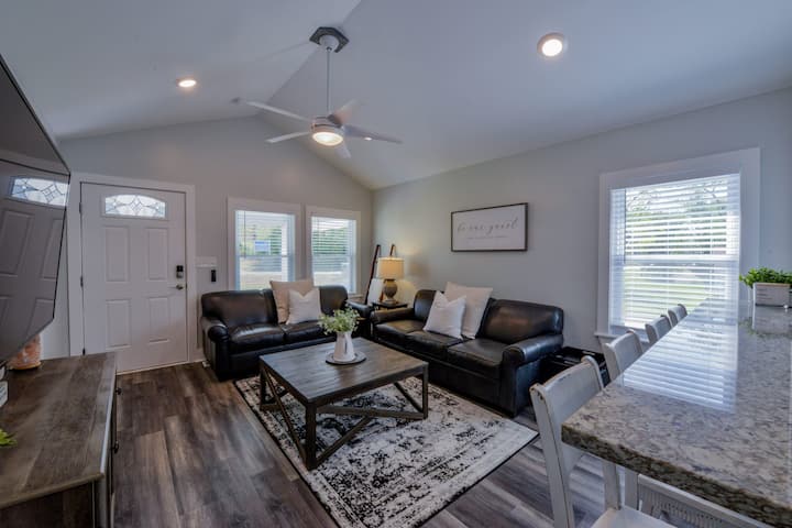 Get ready to prepare the best gameday snacks and home-cooked meals in our fully updated, stocked, modern kitchen! With brand-new granite countertops, plenty of cooking tools, and modern appliances at your fingertips, this charming space invites you to whip up delicious dishes that are sure to be crowd-pleasers. Set the table for four at our dining table, and you’re ready to enjoy!