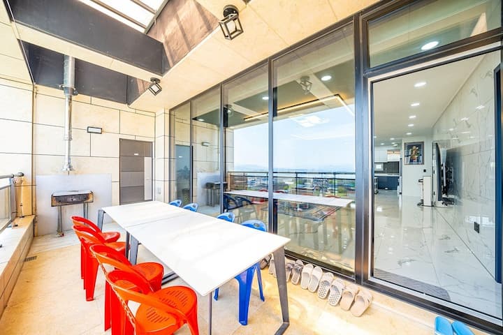 It can accommodate a large number of people at 50 pyeong, and you can also enjoy a private barbecue party on the terrace.
