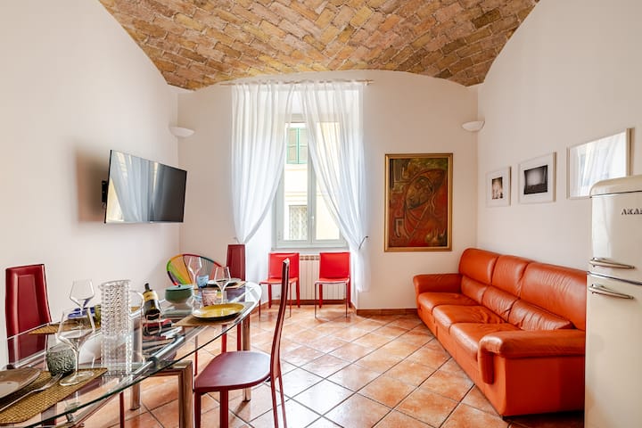 • Edificio Storico di Fine '800: The apartment is located in an Umbertino-style building with one meter thick walls, vaulted ceilings with typical exposed Roman bricks, which confer a unique and historic charm.