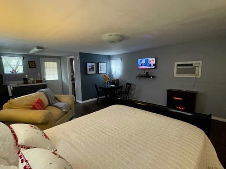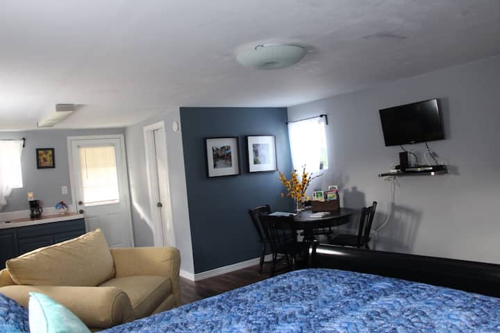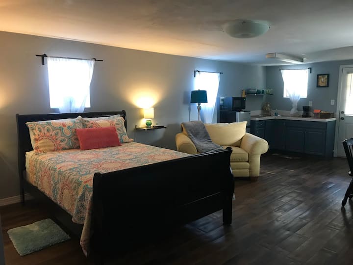 Our guest will have the second floor of The Barn which is completely private. It has its own private bathroom, queen bed, air, TV with basic cable, Wi-Fi, microwave, refrigerator, coffee pot, electric skillet, plates, glasses, soap, shampoo, big closet, and other small amenities. There is also a iron and iron board, washer and dryer for your convenience.