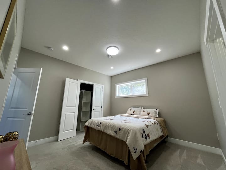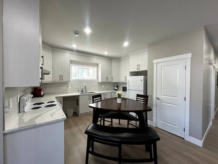 This house offers one ensuite with a queen bed, two bedrooms with double beds, and a fourth bedroom with a queen bed. There is also a large kitchen, a very comfortable/ cozy living space and a large laundry room. You can get the experience of country living within city limits.