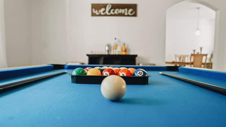 Relax on the outdoor patio, perfect for morning coffee or evening cocktails. The backyard is a tranquil retreat with plenty of seating and a BBQ grill for al fresco dining. Inside, challenge friends or family to a game of pool in the game room—ideal for winding down after a day of excitement. Or, test your luck with a fully equipped poker table (we are not responsible for the fortunes that are lost at the Gator Oasis).