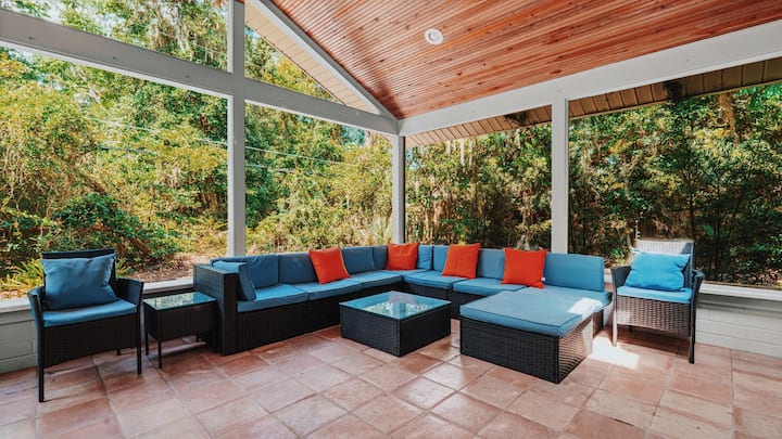 Our charming three-bedroom, two-bathroom home is ideally situated just a 10-minute drive from downtown Gainesville and a mere 3 to 5 minutes from Midtown. Located directly across the street from the university in a serene neighborhood, you’ll enjoy DIRECT access to UF with the ability to retreat and recharge after an exhilarating Gator Game! While you’ll be within walking distance of the campus and UF’s stadium, driving is easy, public transit is reliable and accessible, and Gainesville's grid is a cinch to navigate—making it an ideal choice for travelers attending university-related events.