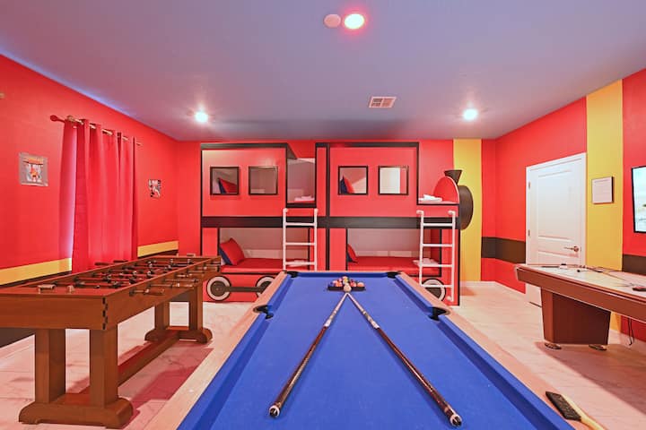 - Game room with an air hockey /a pool table/ a foosball/ a basketball game/an extra fridge, and loft with an PS 4