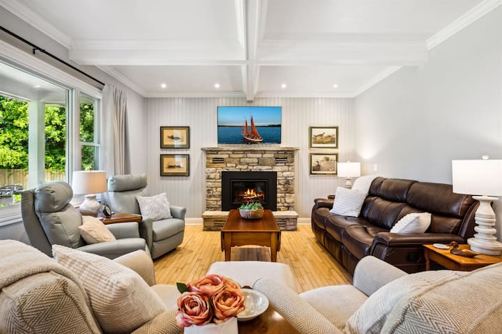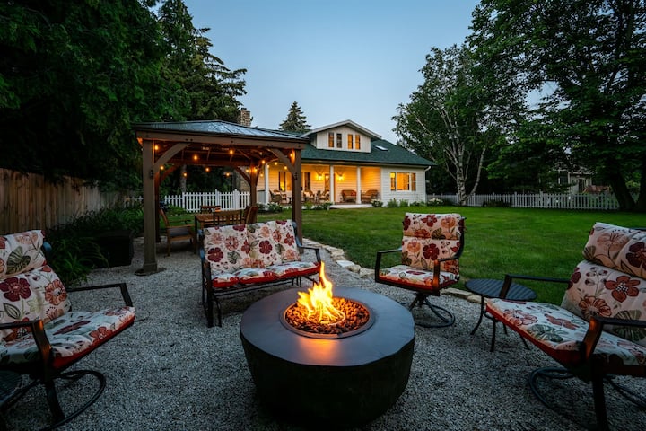 Guests will have access to our entire home and yard. There are three locked rooms in the basement without guest access: one supply room, one cellar room containing our sump pump, and one mechanical room containing our furnace. Our garage is small and very old. Guests can access our garage for storage of their personal items, such as bicycles, coolers, and kayaks, etc. We supply firewood for our firepit, and propane for our fire table and outdoor grill. Our semi-circle, pull-through driveway has parking for three vehicles (village-enforced maximum).