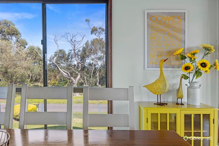 Discover the perfect holiday retreat with this charming split-level home, ideally situated in the coveted area of Cowes. Boasting a serene rural outlook, this beautifully presented property features a spacious, light-filled open-plan living area enhanced by cathedral ceilings and exposed beams, creating an airy and inviting atmosphere. The upper level includes a well-appointed kitchen, dining, and living space that seamlessly transitions to an outdoor area, ideal for entertaining. The lower leve