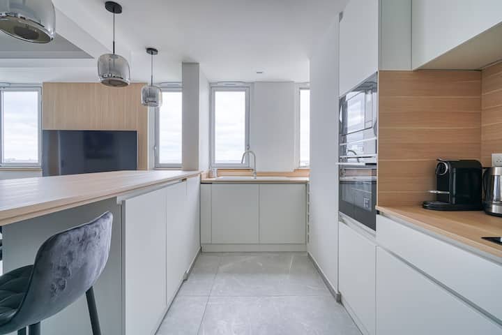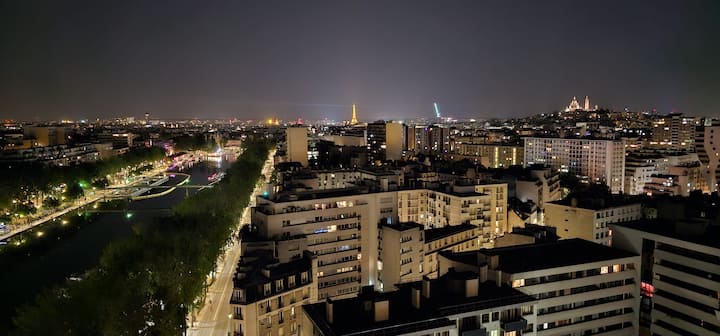 This beautiful apartment located on the 17th floor with elevator offers a panoramic view of Paris (Eiffel Tower, Sacre Coeur, Montparnasse Tower,...)