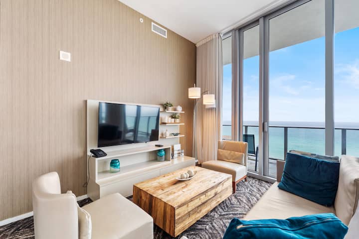 ๐๏ธStep into this stylish condo and enjoy stunning ocean views from the wraparound balcony or through floor-to-ceiling windows. Inside, modern furnishings and an open layout create a relaxing setting, while the full kitchen adds convenience. Resort amenities include an infinity-edge pool, a fitness center, and the ninth-floor Terrazas restaurant. Spend the day on the sand or exploring nearby shops and cafes, then unwind with TV or share your balcony moments with high-speed WiFi. Your Hollywood Beach getaway awaits.