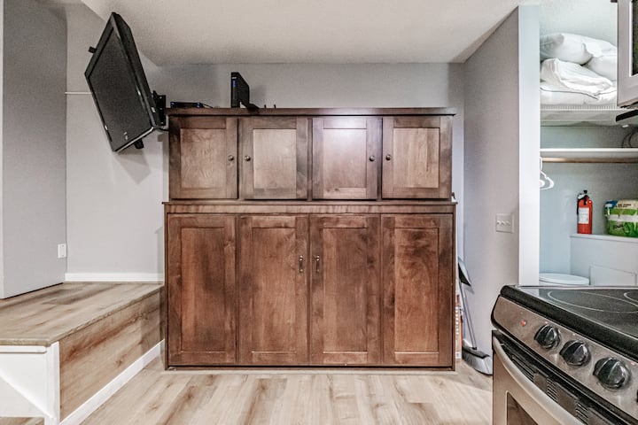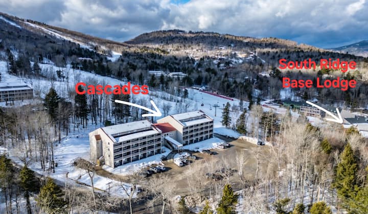 Guests will find Cascades B-2 a super cute studio with queen AND 2 twin murphy beds! Step into cozy comfort in this updated unit from appliances to furnishings and décor. Enjoy everything that makes Cascades special including, ski in/ski out right above South Ridge Base Lodge, indoor pool, saunas and jacuzzi, ski storage for guests with direct trail access, coin operated laundry, large common area with views of the pool, perfect for board games, relaxing and reading a book, or catching up with friends. Grab first tracks from right outside the door. Located just above the base lodge, South Ridge, jump on the Chondola South Ridge Express to access all 8 peaks. Easily ski back to the unit for lunch then head right back out. This unit offers large leather sectional sofa and bar for dining, balcony, well stocked full kitchen, full bath, sleeping 4.