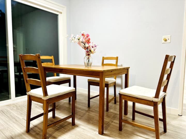 Nestled in a quiet and family-friendly neighborhood, this charming 2-bedroom, 1-bathroom single-family home offers the perfect combination of privacy, comfort, and convenience. Whether you’re traveling for work, study, or leisure, our home provides a peaceful retreat with easy self check-in and check-out for a hassle-free stay.