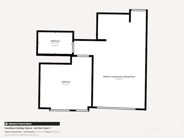 This one-bedroom apartment offers a perfect blend of comfort and style, making it an ideal retreat for guests. With its thoughtfully chosen, simple yet cozy furniture, the space promotes relaxation and convenience. The compact kitchen, seamlessly integrated with the open living and dining area, ensures that guests can easily enjoy home-cooked meals or a quiet moment.