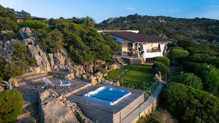Welcome to Villa "Simchà," a Modern Luxury Residence set in a perfectly maintained Private Garden of 7000 sqm. Located on a hill, it offers a breathtaking 360° view of the Porto Rotondo Gulf and its majestic mega-yachts.