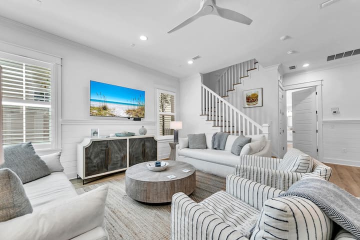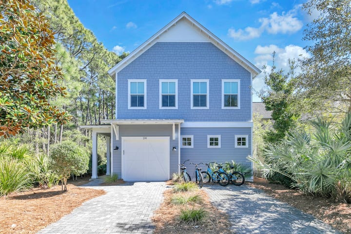 Welcome to Blue Moon a beautifully 4-bedroom 4.5-bath cottage tucked away in WaterSound West Beach and is a quick walk or short bike ride from the dazzling waters of the Gulf of Mexico. Enjoy your morning coffee on the screen porch taking in all the nature that surrounds you. The chef in the family will love this kitchen that has everything you need to cook up a delicious meal for everyone.