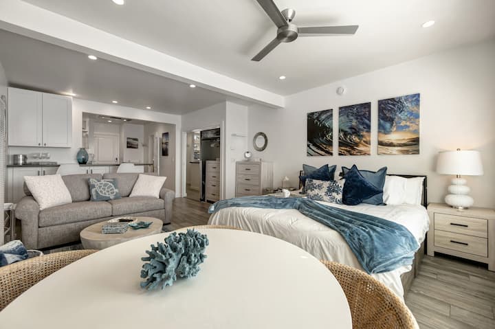 Discover this charming studio in Laguna Beach, designed for relaxation and style. Just steps from the iconic Victoria Beach and next door to The Drake restaurant, it’s ideally located for beach days, dining, and exploring the local art scene. A cozy retreat featuring a king-size bed and thoughtfully curated decor. Perfect for a romantic getaway or solo retreat, enjoy the best of coastal living in an unbeatable location! Downtown trolly stops right in front of our address!!
