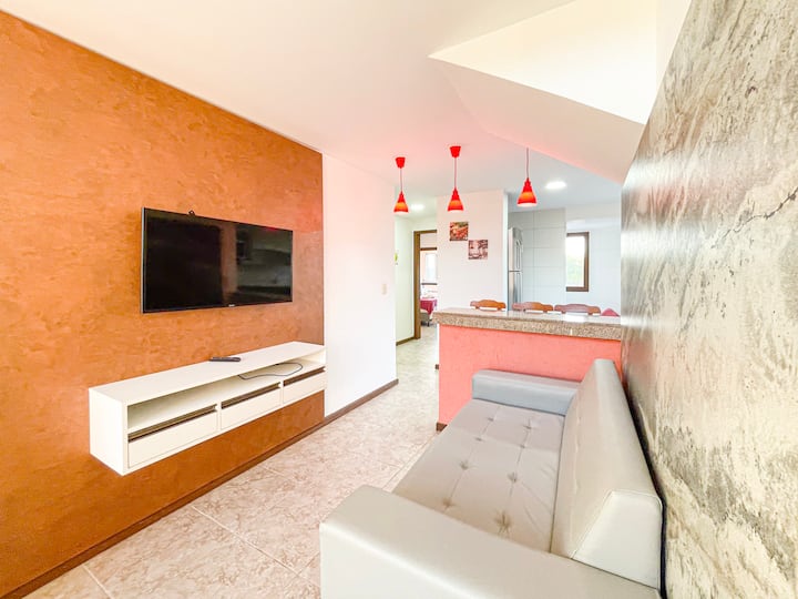 Guests can have access to the garage space of the unit in the parking lot and the common leisure area of the condominium (pool, shower, soccer field, playground and barbecue by reservation and payment of a fee of R$100.00 for the condominium).