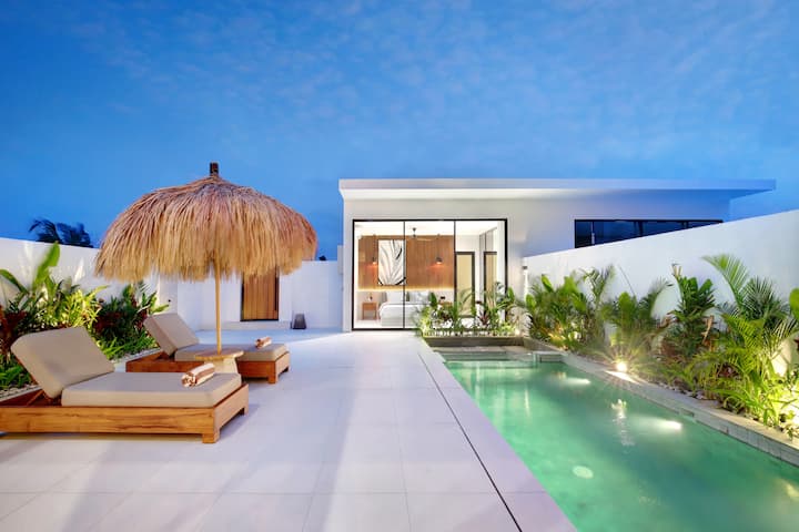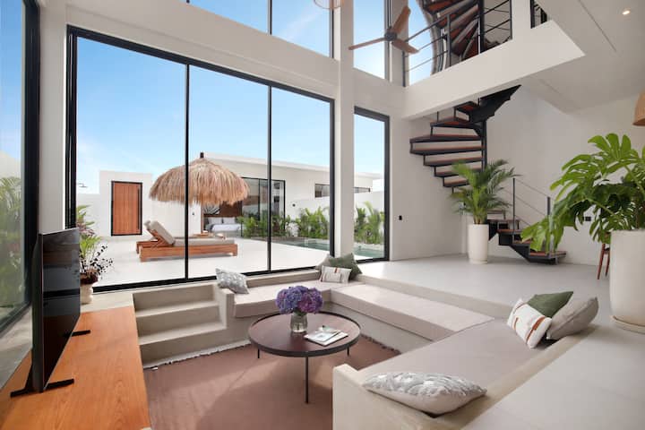 Welcome to your dream retreat in Bali! This newly built luxury villa in Pererenan with 3 bedrooms, enclosed living room with stunning rooftop offering ocean views. Nestled in a serene street, just steps away from the beach, restaurants and bars.