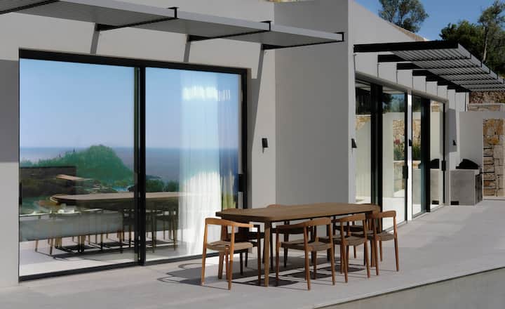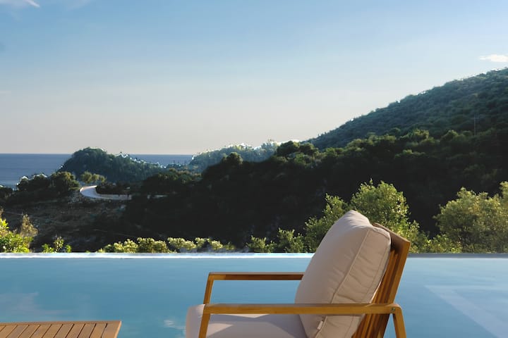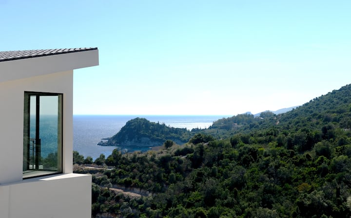 Nestled in the lush greenery of Lefkada Island, in the serene hills of southern Ammouso, lies our beautiful Villa Penelope. This modern Villa offers a private swimming pool and all the amenities you need for an unforgettable holiday. What truly sets Villa Penelope apart is its breathtaking view of the Ionian Sea, and its prime location just a 15-minute walk from the beach. Experience the ultimate Greek island getaway at Sirocco Villas.