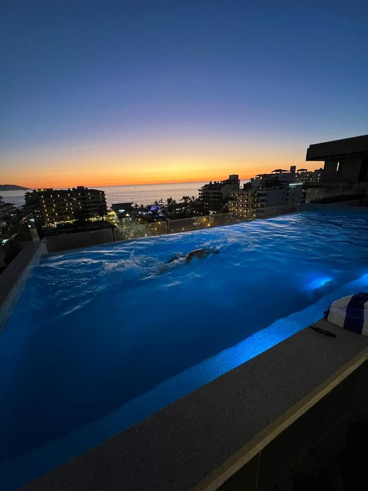 Cozy studio in the vibrant heart of Puerto Vallarta's Romantic Zone, steps away from Los Muertos Beach. Enjoy an incredible Roof Top with pool, surrounded by the best restaurants, bars, art galleries and nightlife in Olas Altas. Ideal for exploring the rich local cuisine and cultural charm. Live the unique experience of this constantly growing city, perfect for travelers looking for comfort and excitement in one place.