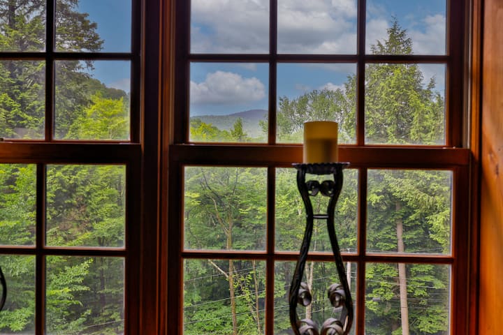Bear Foot Lodge is a stunning 5,000 sq ft 4BR/4BA chalet mins from Killington & just 3 min to Riverside Farm. Enjoy a chef’s kitchen, stone fireplace, rec room, sauna, jetted tub & treehouse loft kids love. Sleeps 12 w/ flexible beds. Fast WiFi, smart TV, laundry, BBQ grill, huge covered porch w/ mountain views, direct trail access for hiking, biking & snowmobiling. Perfect for ski trips, weddings, reunions or group getaways. Book your VT adventure now! Discounted ski rentals and area guide!