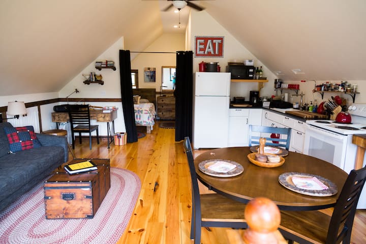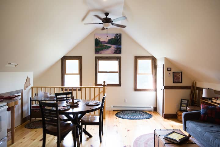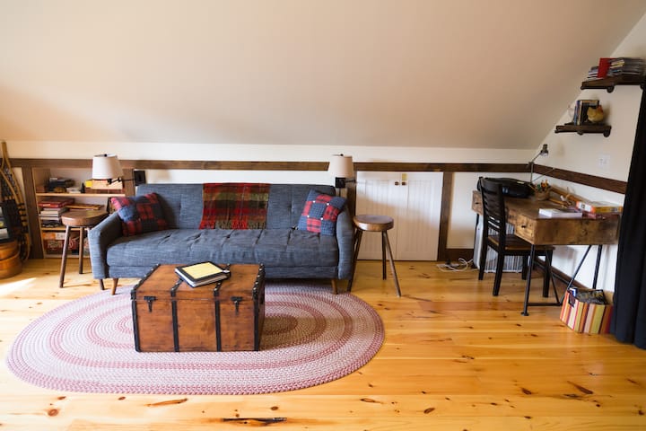 Built in 2016 on Marjorie Farm's 230-year-old property, the Crow's Nest offers a private, well-appointed retreat in a rustic setting. Enjoy loft ceilings and abundant light in this meticulously renovated 2nd floor of our barn.