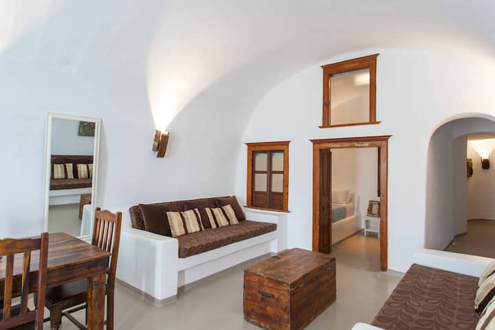 Cavern House Anthea is a unique property set in one of Santorini’s most peaceful, unspoilt and traditional villages; Exo Gonia. Accommodating 6 guests with indoor and outdoor facilities it is a perfect blend of location, comfort and convenience for your stay in Santorini.