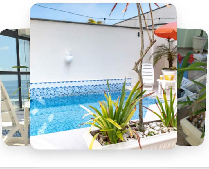 Pay in installments with Airbnb, up to 6x interest-free. Early check-in option at 9 a.m. or late check-out at 6 p.m., just bring sheets and bath towels. We have pillows, blankets and mattress covers. It's a 4-minute walk to the beach. There are 2 parking spaces, overlooking the ocean, complete with (swimming pool and private barbecue) Quiet and wooded street. Great location with everything you need nearby. With markets 1 block away, pharmacy 4 blocks, banks, fast food 6 blocks, restaurants 1 block, and 2 Smart Fit, theater
