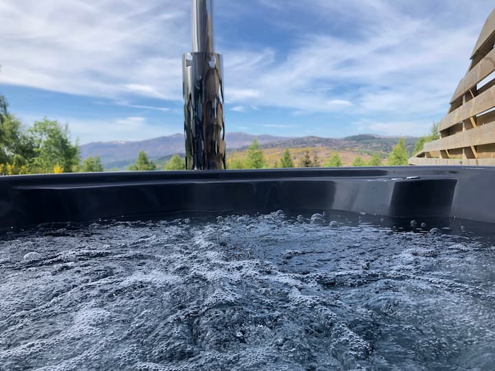 Heather Cottage is a Luxury semi detached Cottage that is perfect for Couples or families to relax. The cottage is stunning and comes with a fabulous deck and optional wood fired hot tub with Panoramic views overlooking Glen Strathfarrar.