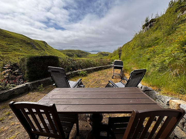 Galley Cabin is situated overlooking the sea and islands beyond Kerrera.