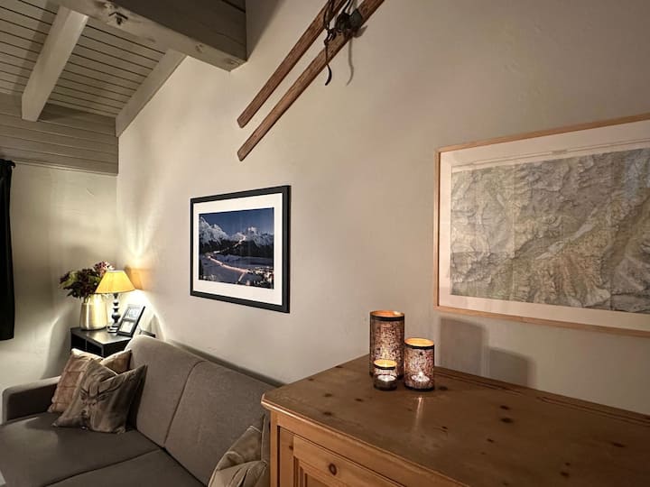 "Residenza Chesa Margun 24-1", 1-room apartment 34 m2 on 2 levels, north facing position. Renovated in 2024, comfortable and beautiful furnishings: living/dining room with 1 double sofabed (170 cm, length 200 cm), dining nook, cable TV, flat screen and radio.