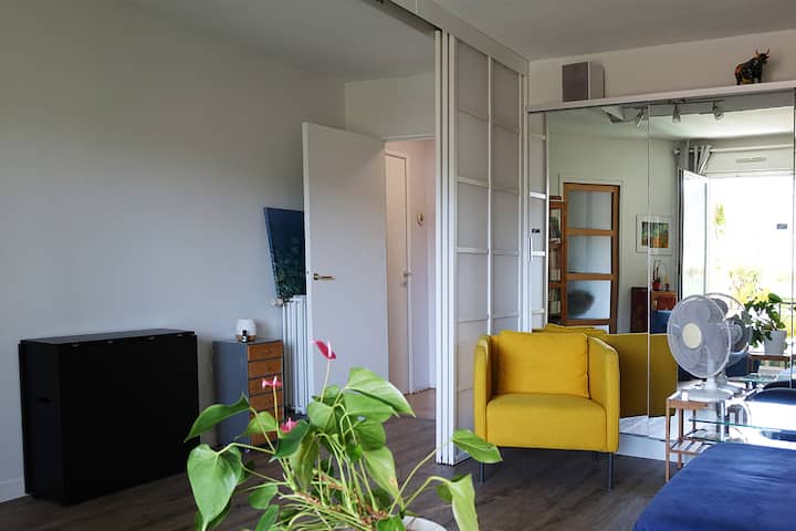 T2 center, bright, quiet, garage, close to metro