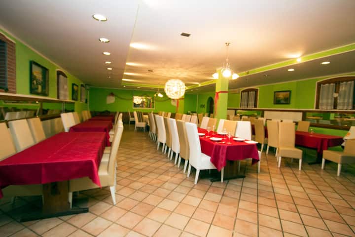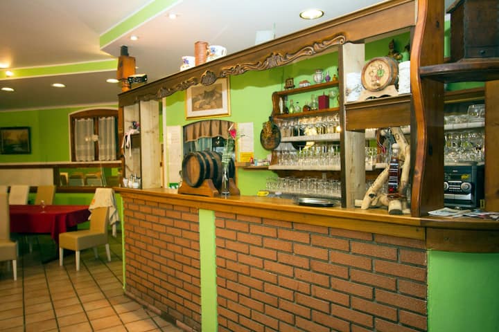 We run a family farm house with 9 double rooms and 2 triple bed rooms. All rooms have their own bathroom and TV.