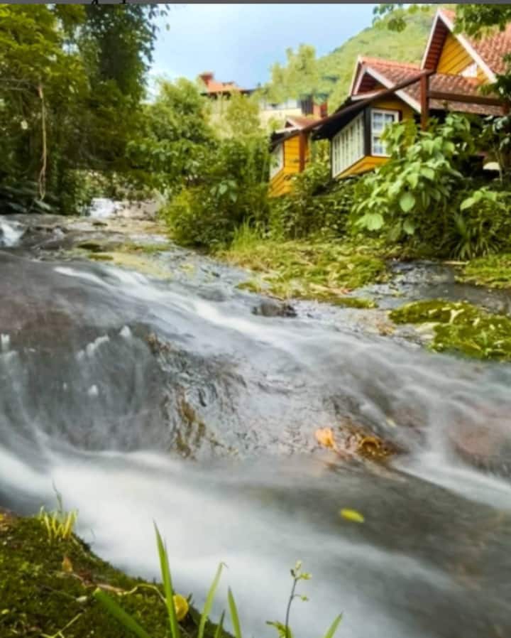 We are Espaço Verde Novo, a cottage complex with two natural pools, gardens, in the middle of the green of Teresópolis.