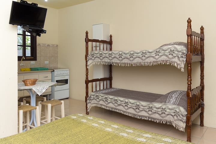 1 double bed, 1 bunk bed