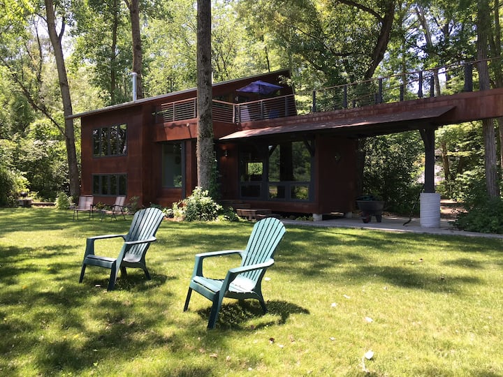 We love art, music, good food & interesting travel experiences. We also enjoy watching the birds & wildlife that inhabit our island: Sandhill Cranes, swans & geese, beavers & an occasional coyote. We swim, kayak & canoe in the lake.