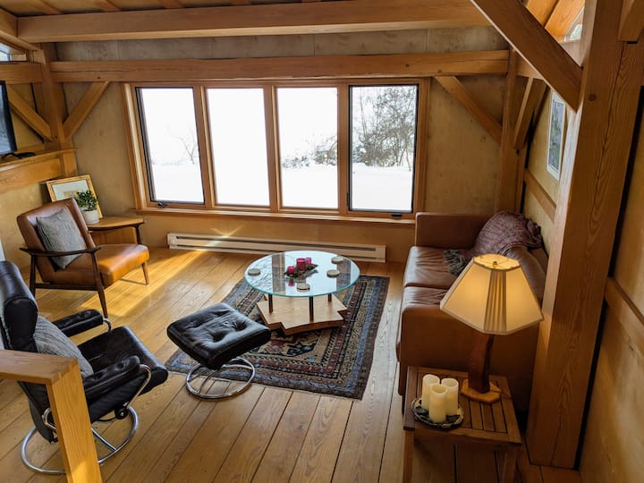 He designed it to fit the beautiful landscape, using dead ash trees from a near-by forest. I now also help host a small house in town, artfully renovated by my son, Thomas. It too is a unique & inspired place.